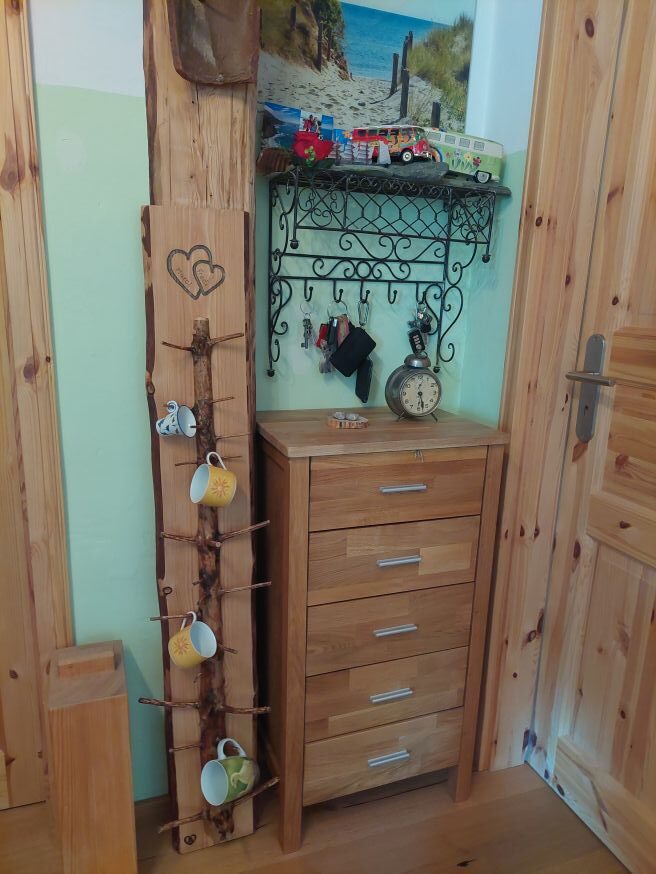 Das Design bleibt bewusst schlicht und zeitlos. Die natürliche Struktur des Holzes tritt in den Vordergrund und sorgt für Wärme und Authentizität. Ob im Eingangsbereich, Wohnzimmer oder Büro – diese Upcycling-Produkte setzen ruhige, natürliche Akzente, die jedes Zuhause bereichern.